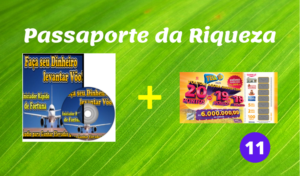 O Passaporte da Riqueza nº 11 é um produto exclusivo, fruto de uma inteligente parceria entre a Readbook Brasil e a Liderança Capitalização. O kit é composto pelos incríveis áudios de riqueza infinita mais uma cartela de Telesena vigente.