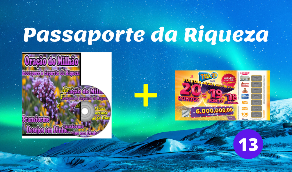 O Passaporte da Riqueza nº 13 é um produto exclusivo, fruto de uma inteligente parceria entre a Readbook Brasil e a Liderança Capitalização. O kit é composto pelos incríveis áudios de riqueza infinita mais uma cartela de Telesena vigente.