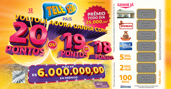 Você receberá a Telesena em até 30 (trinta) dias da data da compra, no endereço indicado em seu cadastro, Lembrando que a Telesena possui validade de 5 (cinco) anos e que, mesmo após as datas dos sorteios na TV, continua válida para resgate de prêmios nesse período.