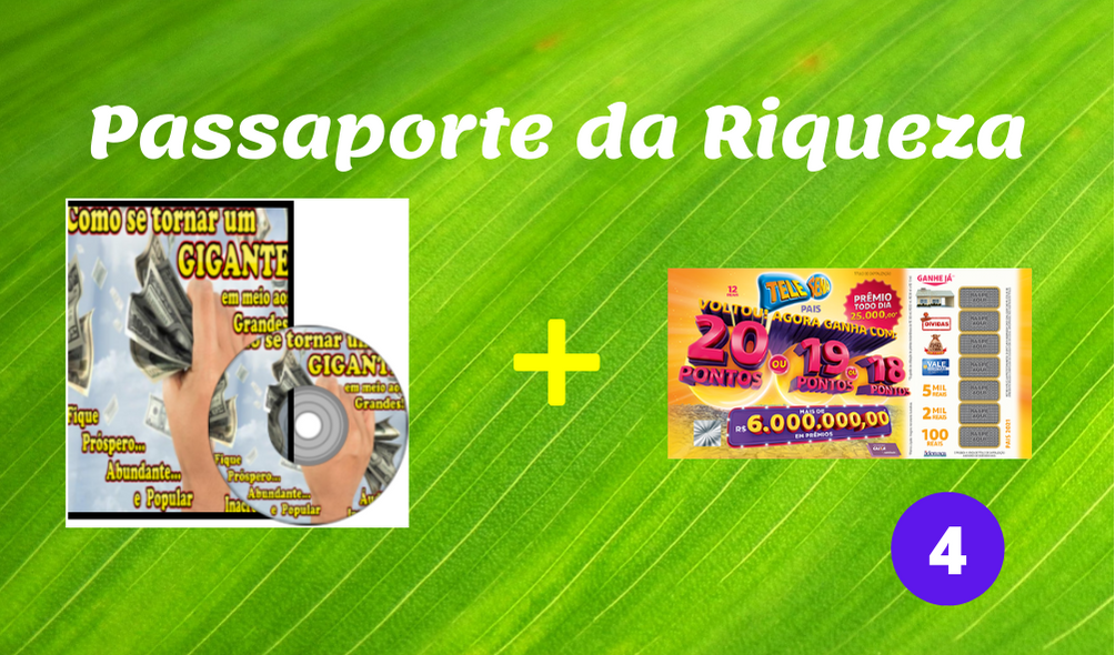 O Passaporte da Riqueza Nº 4 é um produto exclusivo, nascido de uma inteligente parceria entre a Readbook Brasil e a Liderança Capitalização. O kit é composto pelos incríveis áudios de riqueza infinita mais uma cartela de Telesena vigente