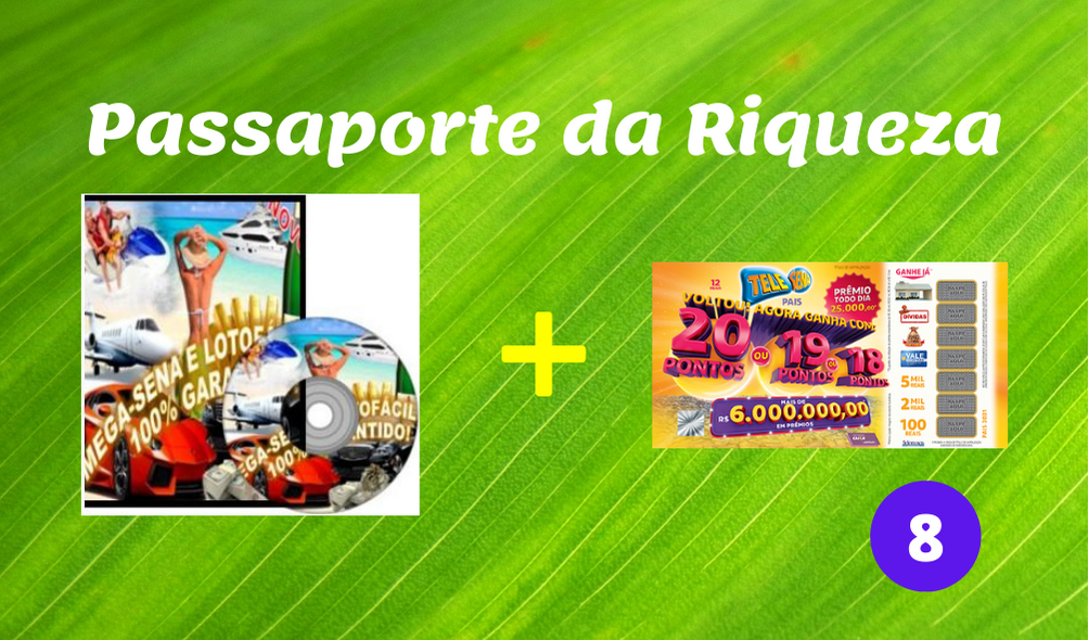 O Passaporte da Riqueza Nº 8 é um produto exclusivo, fruto de uma inteligente parceria entre a Readbook Brasil e a Liderança Capitalização. O kit é composto pelos incríveis áudios de riqueza infinita mais uma cartela de Telesena vigente.
